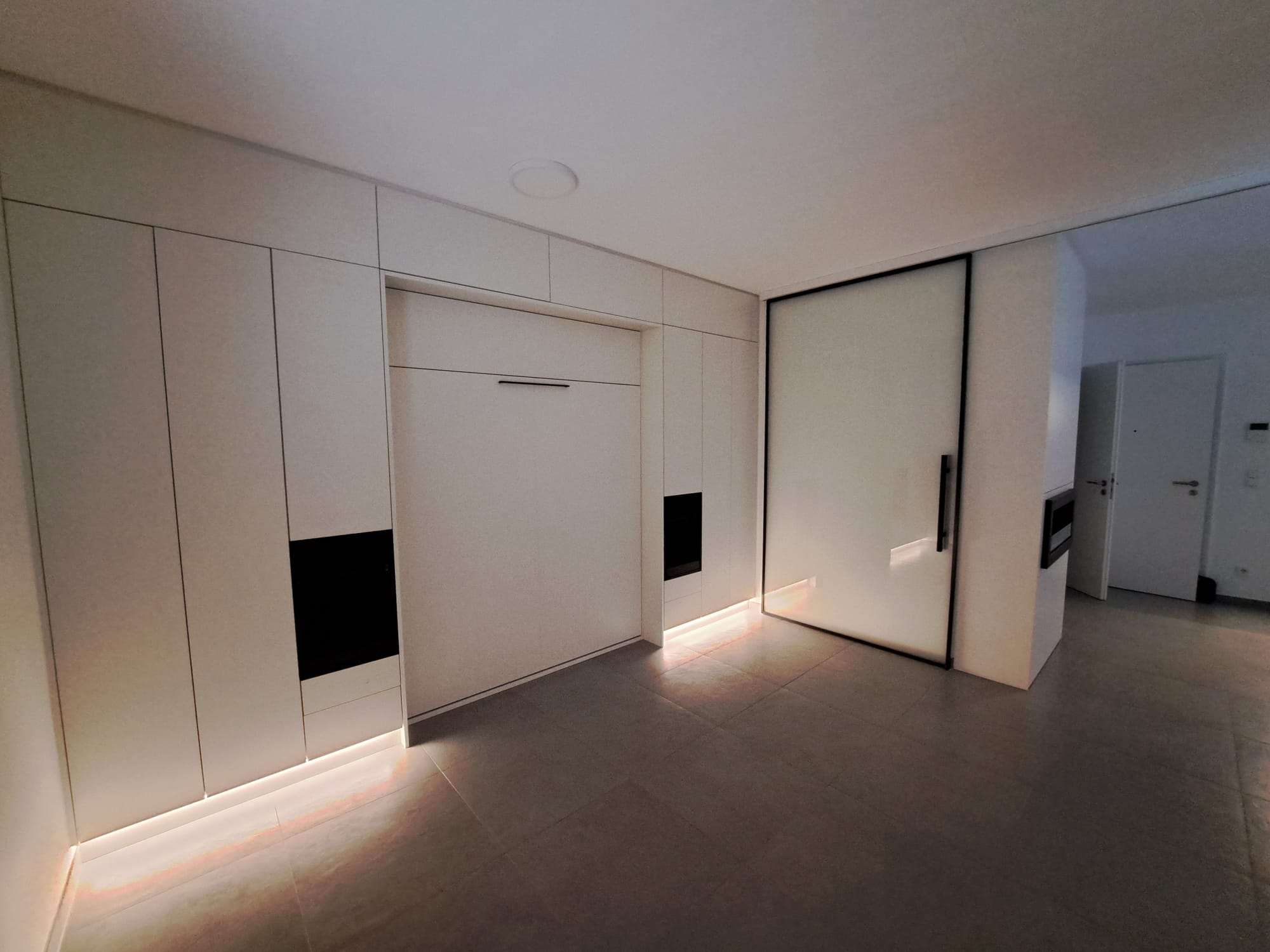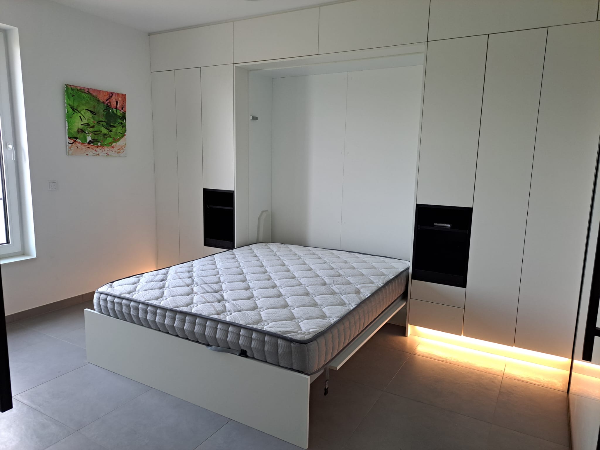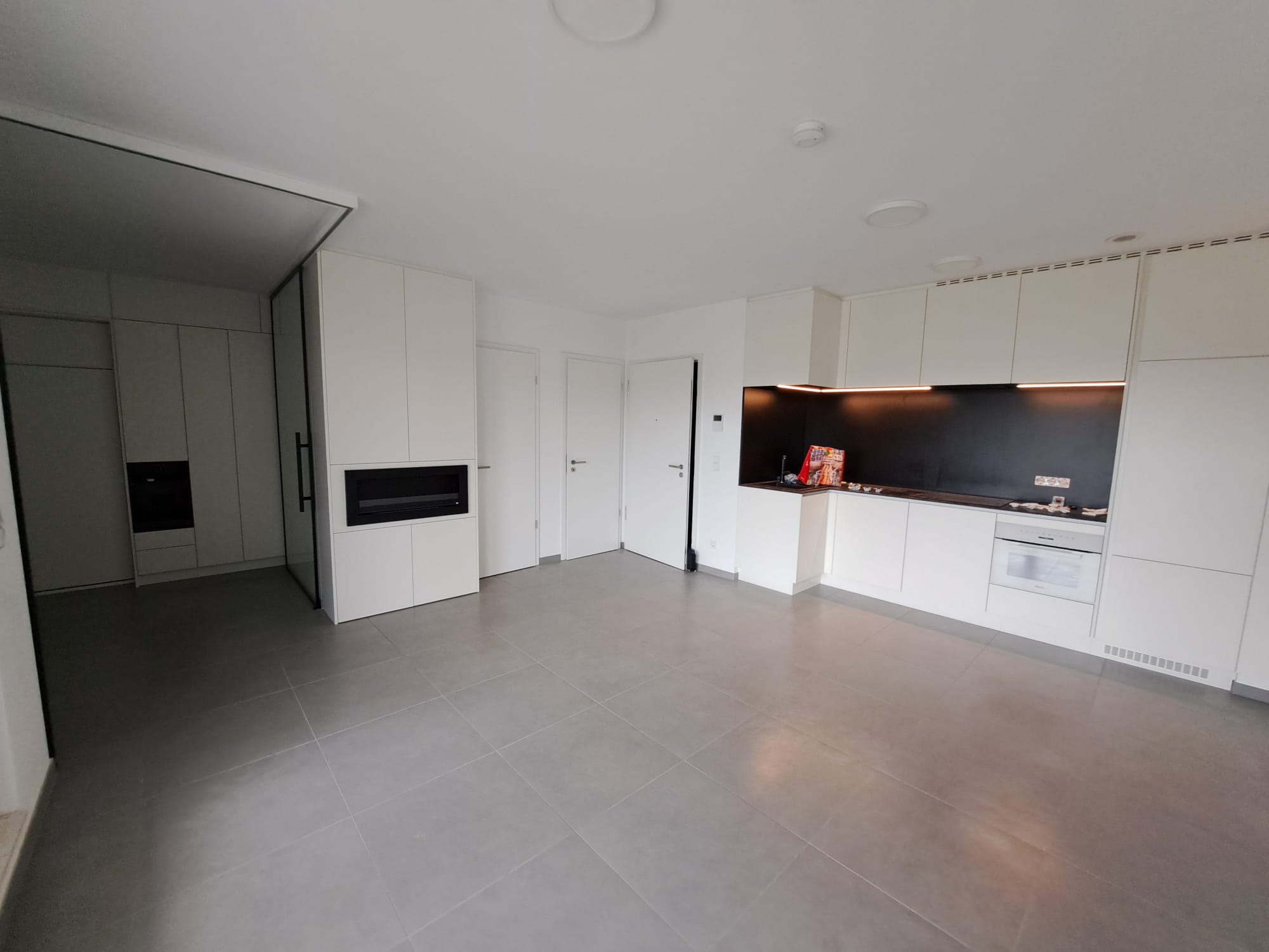 Bel Appartement-Studio récent et meublé avec 1 chambre à coucher, une belle cuisine équipée intégrée dans le living avec accès à la grande terrasse orientée SUD-OUEST, salle de douche, petit débarras et une cave. Possibilité de louer 1 ou 2 emplacements intérieurs à 125€/p, plusieurs places de parking publics.